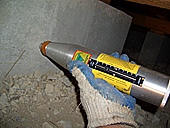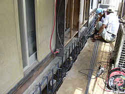 鉄筋の入っていない基礎に鉄筋を入れ強度を上げて基礎の破壊を防止する。